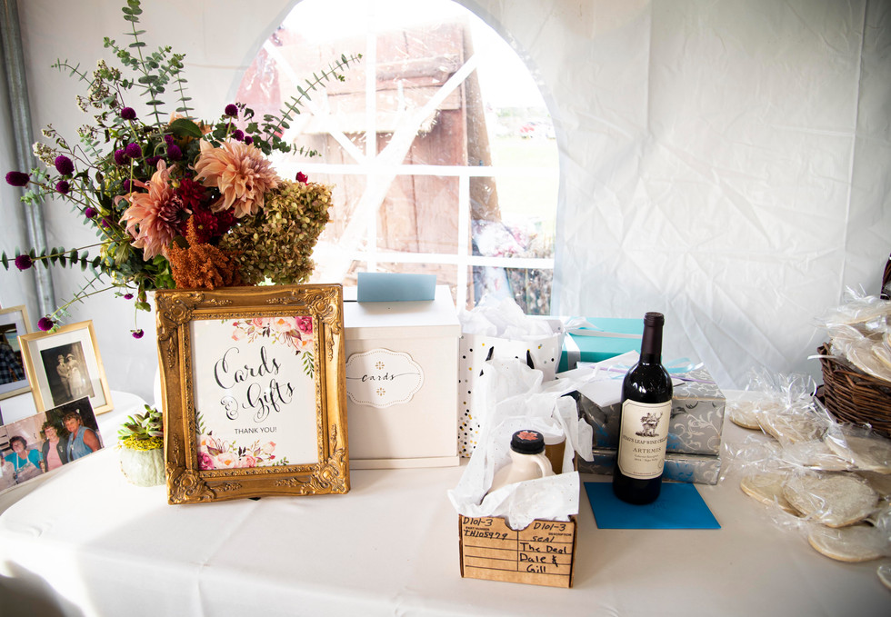 The cocktail hour was strategically lengthened so that Gillian and Dale could catch up on some photos together, as well as the photos with family and friends. As for the guests, they were treated to a hay ride down the hill and to the tent. From there, they helped themselves to beer on tap, drinks at the bar, and a wide assortment of food provided their family friend, Laurie Woodrick. The reception started with a bang with introductions and a heartwarming first dance. There was also plenty of barbecue food provided by Q Crew. What really stood out to me were the dedication dances, including a mother daughter dance to "Mama" by the Spice Girls and grandma dedication dance to Florence and the Machine's "How Big, How Blue, How Beautiful." One of the biggest crowd pleasers with Garth Brook's "Friends in Low Places." It got the whole party up and singing. For dessert, the guests were treated to a huge spread of sweets, including cupcakes, cannoli dippers, sugar cookies, tarts, and various pastries. Even after being filled up on sweets, the party continued into the night.