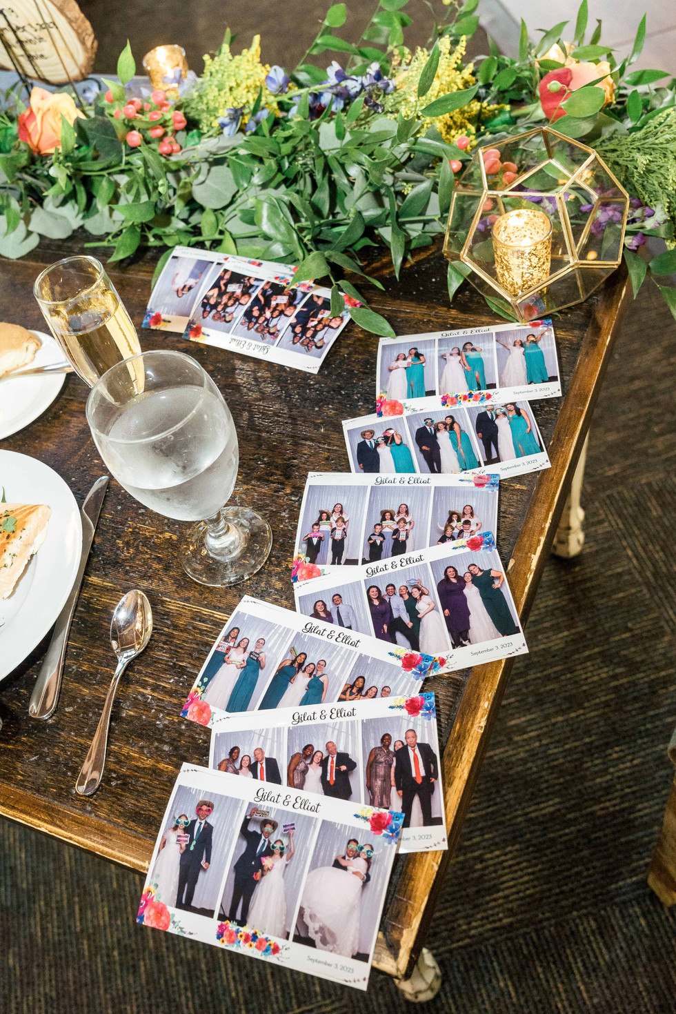 Their day was a representation of their creativity, love of music, and Jewish heritage. The venue was covered in bright, jewel-toned flowers provided by J&M. Gilat and Elliot utilized every bit of communal table space to showcase the artwork they've created for one another, including a large pencil sketch of Elliot playing a guitar by Gilat. Their love of music was epitomized through their guestbook—a double neck guitar Elliot made himself. Instead of table numbers, the bride and groom opted for hand-made string art of their favorite animals, mounted on wooden trivets. Guests sat at uniquely set tables, with names ranging from "Labrador" to "Elephant."