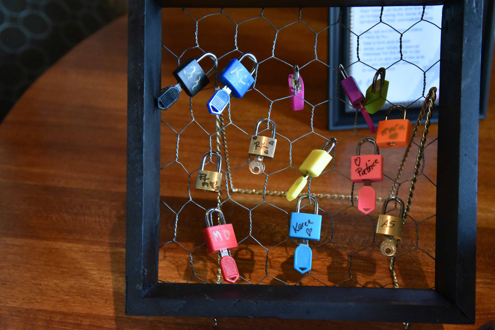 For activities, guests could take photos and write their names on locks to be placed on a metal grid, reminiscent of the love lock bridges in Paris.